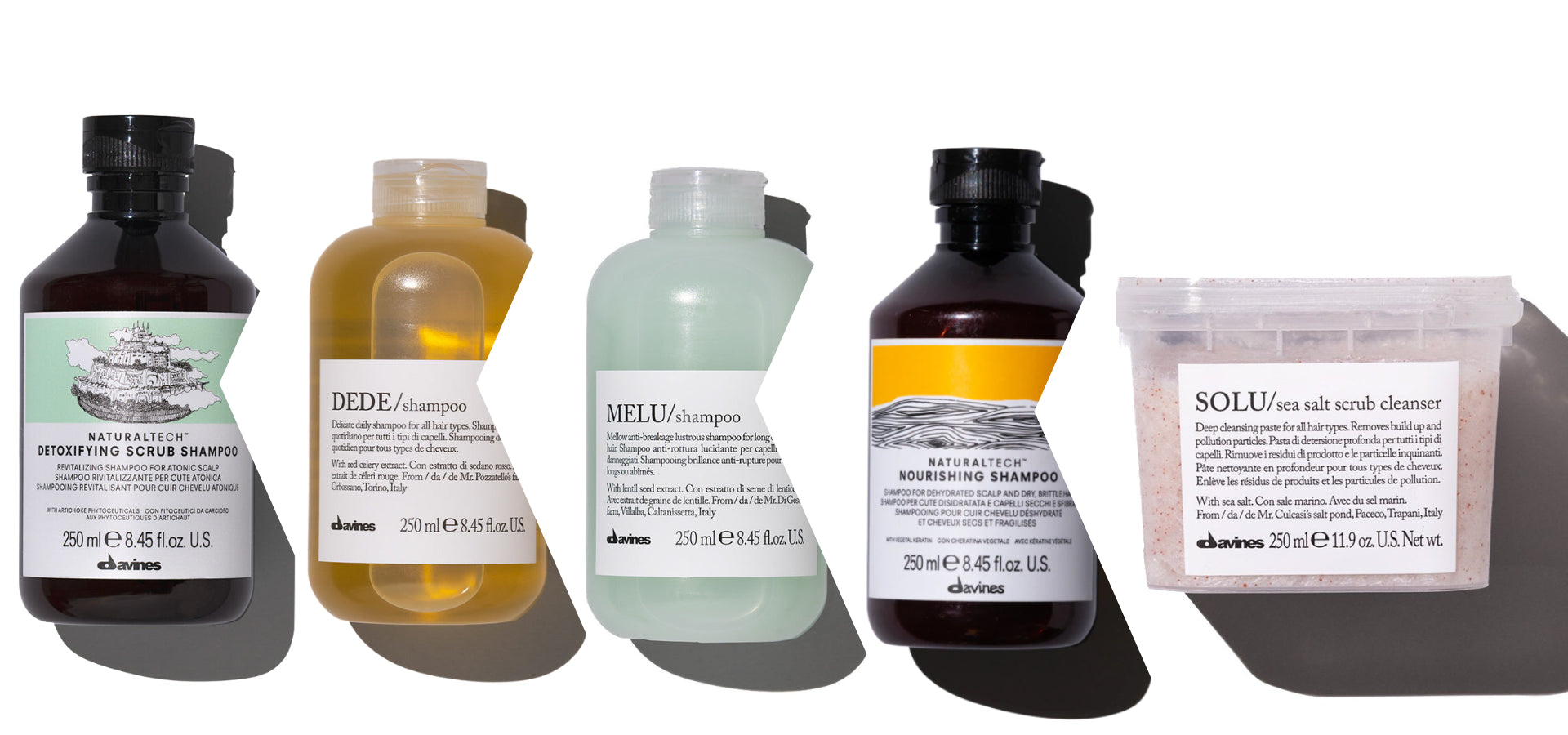 Davines has a few lines for dry hair with the weight of moisture from light to heavier. I highly recommend the heaviest (Nounou) for only thicker hair types. Here are dry hair tackling shampoos from lightest to heaviest:
